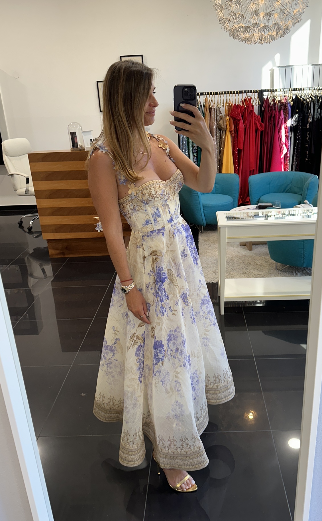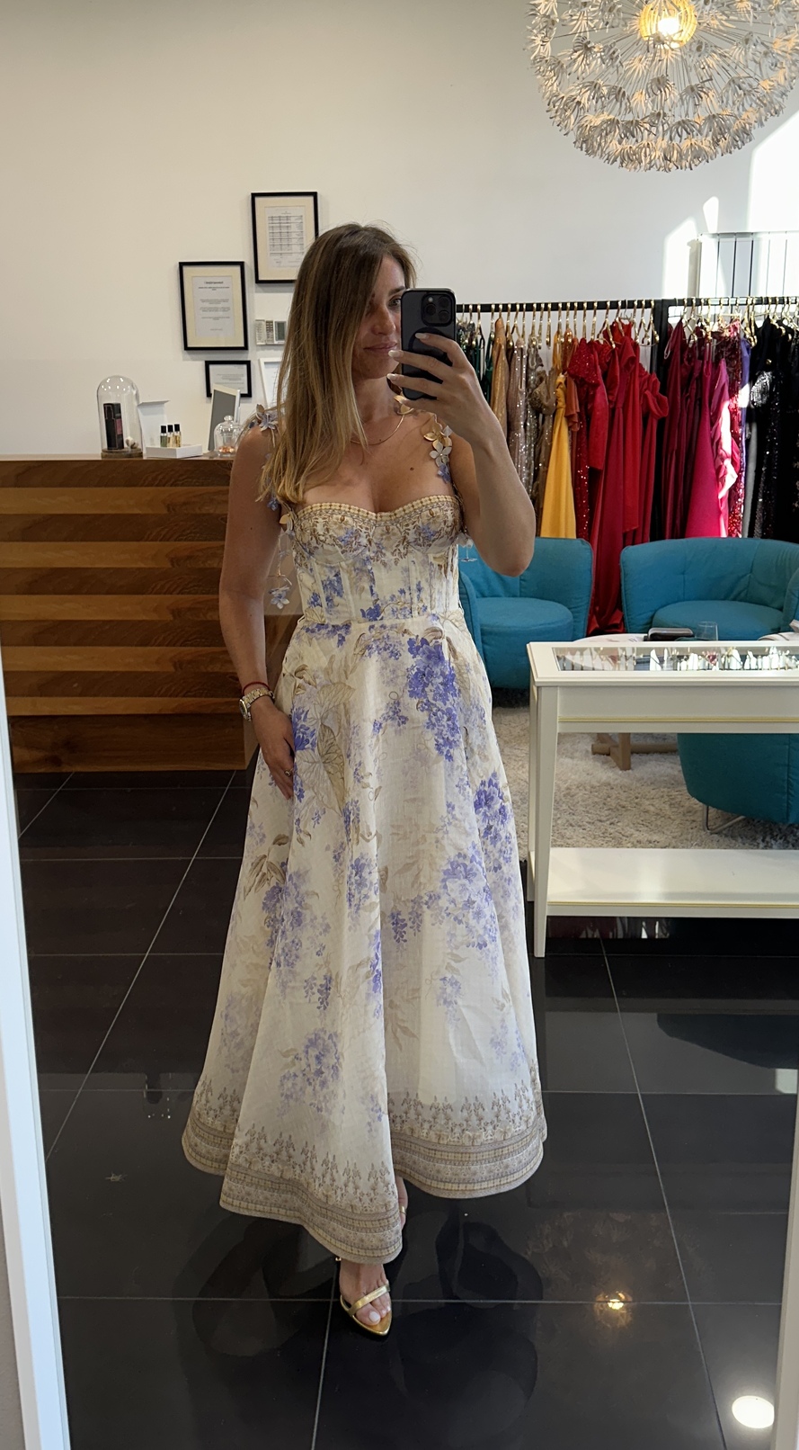 Haljina od kombinacije svile i lana u princeza kroju sa korzet dijelom